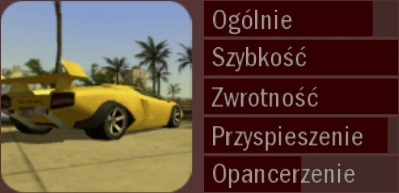 Miniaturka i osiągi pojazdu w menu szofera