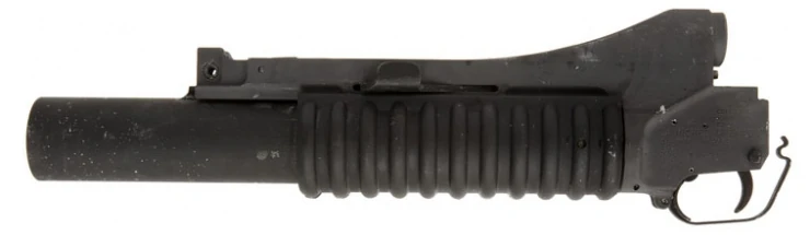 The Cobray CM203 37mm flare launcher is not a grenade launcher. It fires distress flares from a 37mm smooth bore and cannot accept 40mm munitions. However, since it looks like an M203 grenade launcher, it is commonly mistaken for one in films on this site. It was built for civilian use as an under slung flare launcher commonly mounted under M16/AR-15s variants and other rifles. It is preferred for most film use over a genuine M203 mainly because, unlike the M203, it is not considered a "Destructive Device" in the U.S. and not subject to NFA regulations.