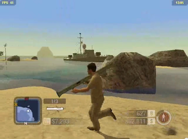 The Frigate is an unique, uncontrollable vehicle in Scarface - The World Is Yours, it only appears in the mission Contra Band. The Frigate must be destroyed during the mission, it is quite durable, as it can withstand two rockets from either the Bazooka or the Missile Launcher, it also fires missiles at Tony Montana during the mission, making it quite dangerous. The Frigate is actually driven by U.S Military according to the description, thus this making the only appearance of U.S Navy in the game.