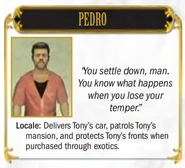- Pedro: Henchman who looks like Jose, only with a recoloured shirt and usually without shades. Spawns commonly at night.